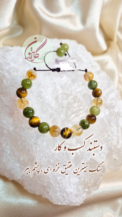 خرید دستبند کسبوکار با ترکیب سیترین، عقیق خزهای و چشمببر طبیعی. مناسب افزایش درآمد، رونق شغلی، تمرکز و جذب فرصتها. سنگهای اصل و انرژیدار.