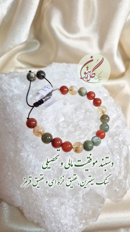 خرید دستبند موفقیت مالی و تحصیلی با ترکیب سیترین، عقیق خزهای و عقیق قرمز. مناسب تمرکز، افزایش انگیزه، جذب ثروت و پیشرفت تحصیلی. سنگهای طبیعی و انرژیدار.