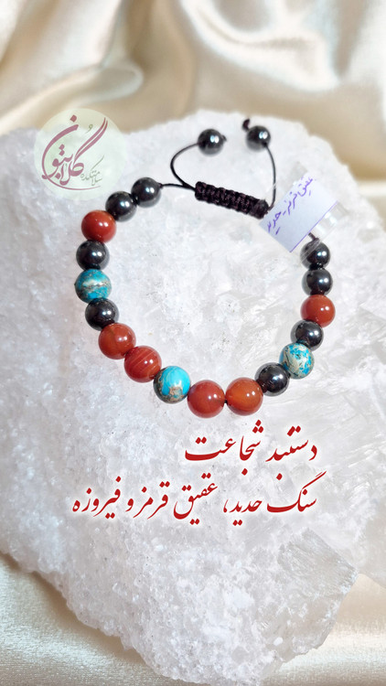 “خرید Courage Bracelet با ترکیب Hematite، Red Agate و Turquoise. افزایش شجاعت، اعتمادبهنفس، آرامش ذهن و انرژی مثبت. سنگهای طبیعی و انرژیدار.دستبند شجاعت