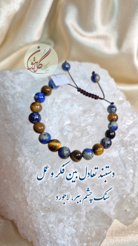 ترکیبات : سنگها: چشمببر، لاجورد نوع بند: کشی یا قابل تنظیم سایز مهرهها: ۸ یا ۱۰ میلیمتر مناسب برای بانوان و آقایان پاکسازی و شارژ انرژی قبل از ارسال
