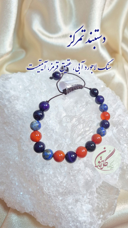“خرید Focus Bracelet با ترکیب Lapis Lazuli، Agate و Amethyst. افزایش تمرکز، آرامش ذهن، تصمیمگیری بهتر و انرژی مثبت. سنگهای طبیعی و انرژیدار.”یک دستبند انرژیبخش است که برای افزایش تمرکز، آرامش ذهنی و تقویت قدرت تصمیمگیری طراحی شده است. ترکیب سه سنگ طبیعی لاجورد (Lapis Lazuli)، عقیق (Agate) و آمیتیست (Amethyst) باعث میشود ذهن شما آرام و متمرکز شود و انرژی مثبت در کارها و فعالیتهای روزمره شما جریان پیدا کند.